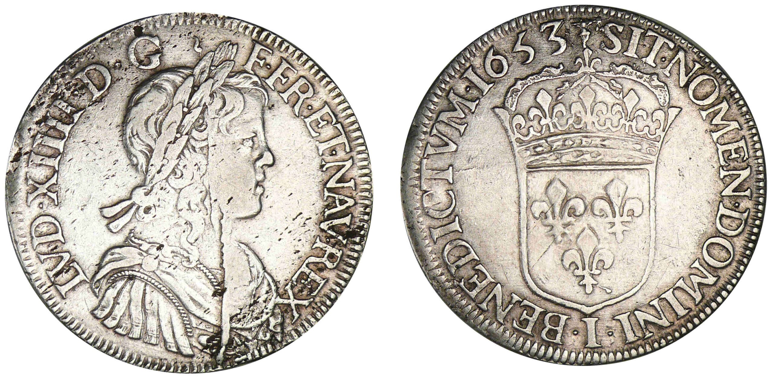 / Louis XIV – Ecu à la mèche longue 1653 I (Limoges)