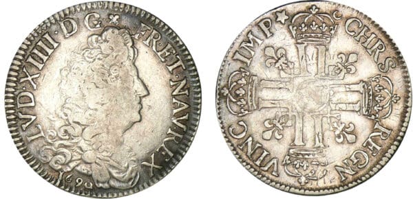 Louis XIV – Ecu aux 8 L 1er type 1690 N (Montpellier)