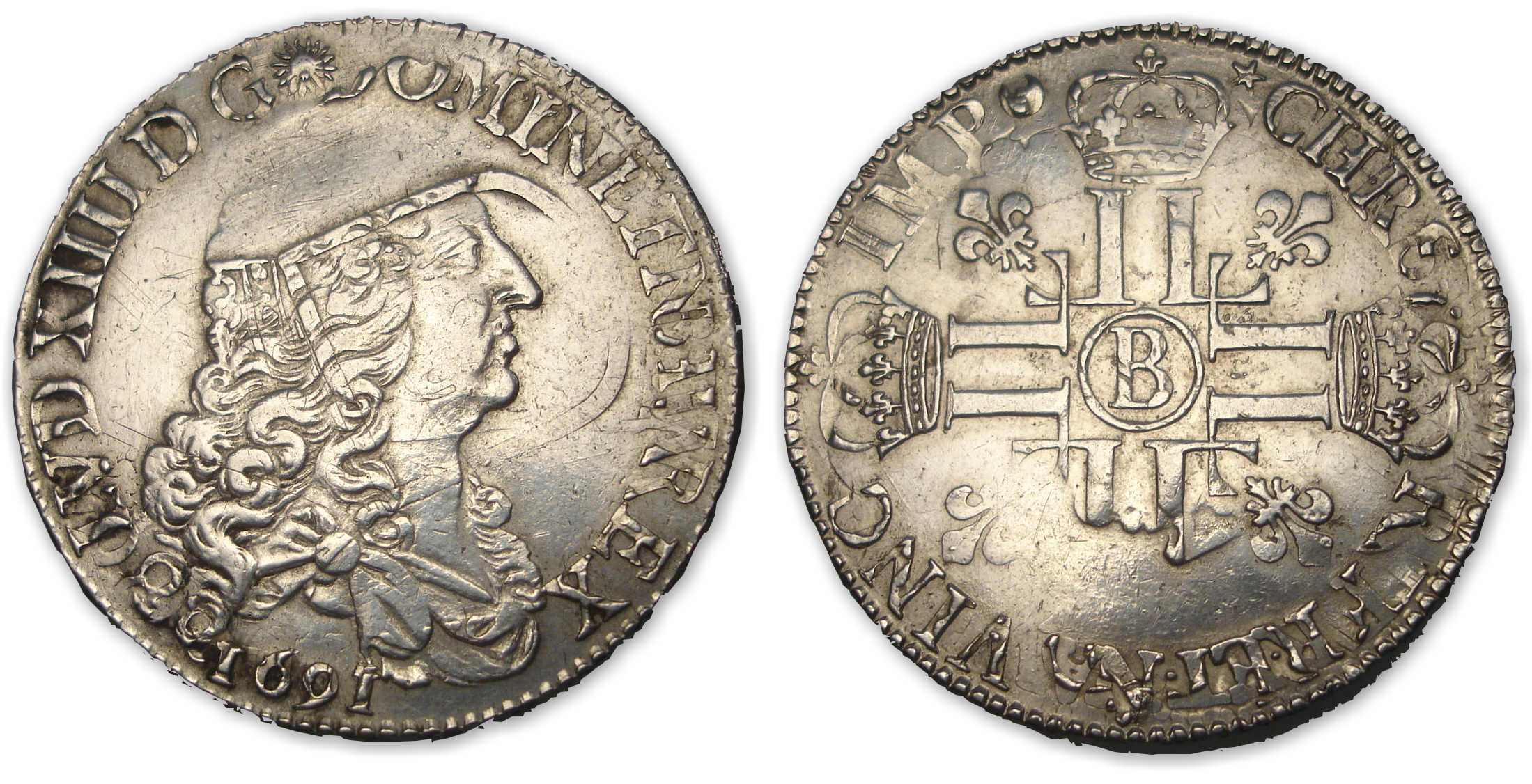 Louis XIV – Ecu aux 8 L 1er type 1691 B (Rouen)