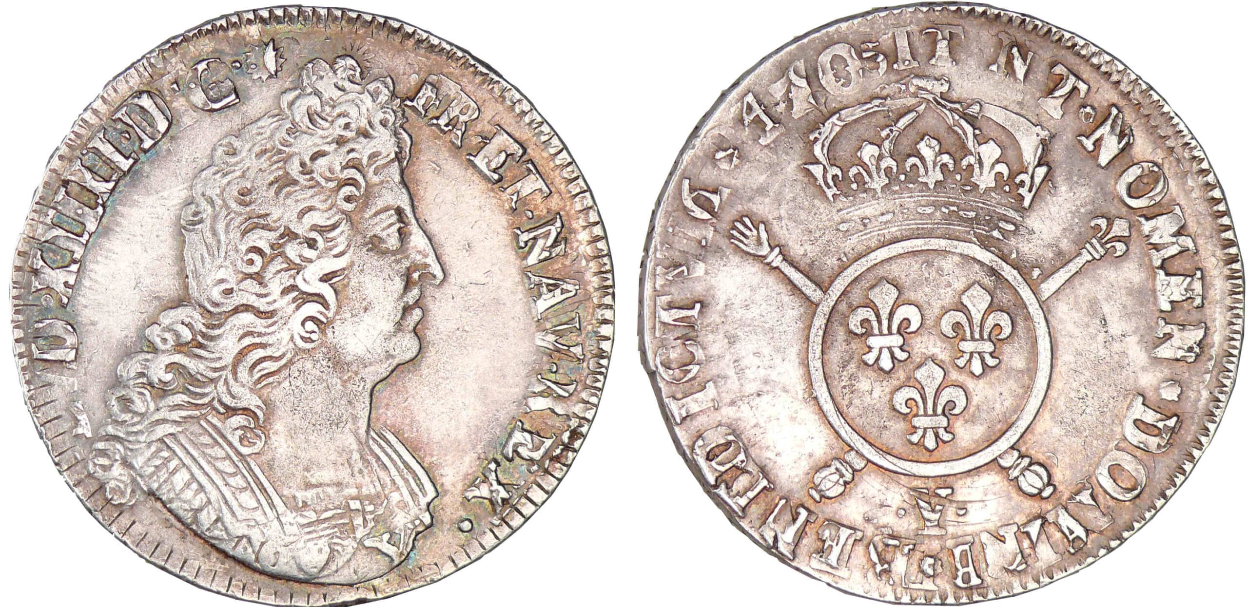 / Louis XIV – Ecu aux insignes – 170? Y (Bourges) – Flan réformé