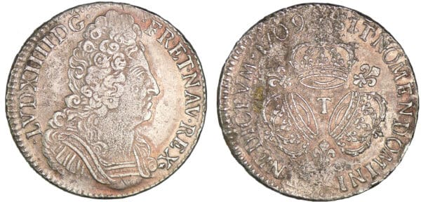 / Louis XIV – Ecu aux trois couronnes – 1709 T (Nantes)