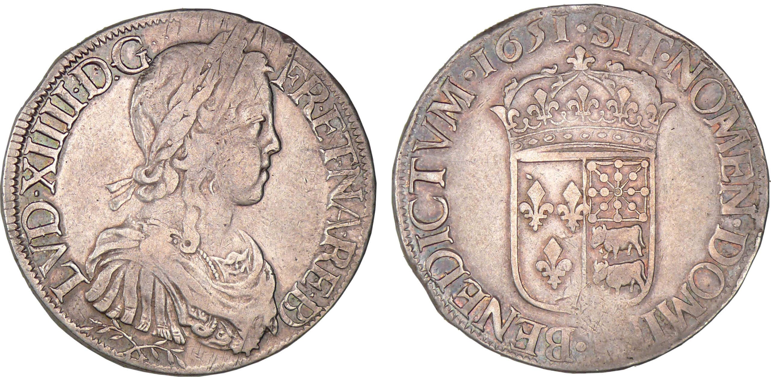Louis XIV – Ecu de Béarn à la mèche longue – 1651 (Pau)