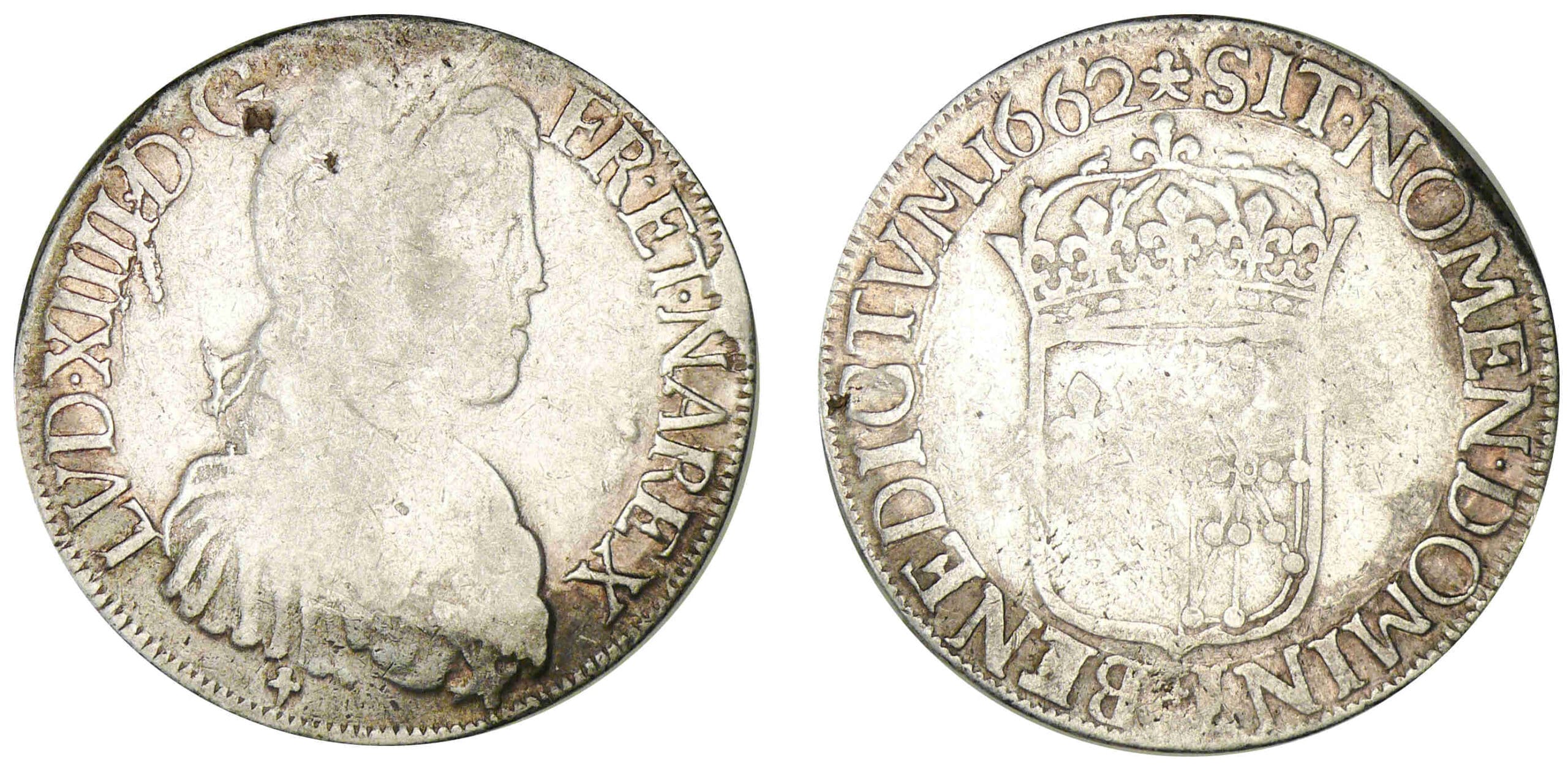 / Louis XIV – Ecu de Navarre à la mèche longue 1662 (Saint-Palais)