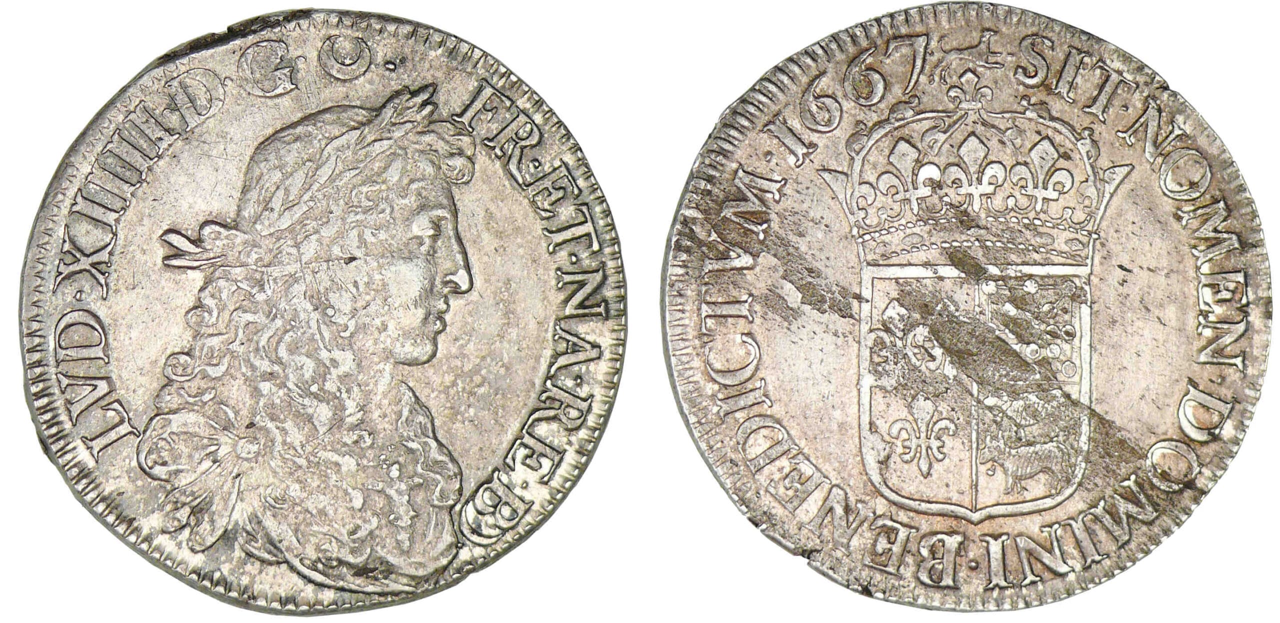 / Louis XIV – Ecu du Béarn au buste juvénile 1667 (Pau)