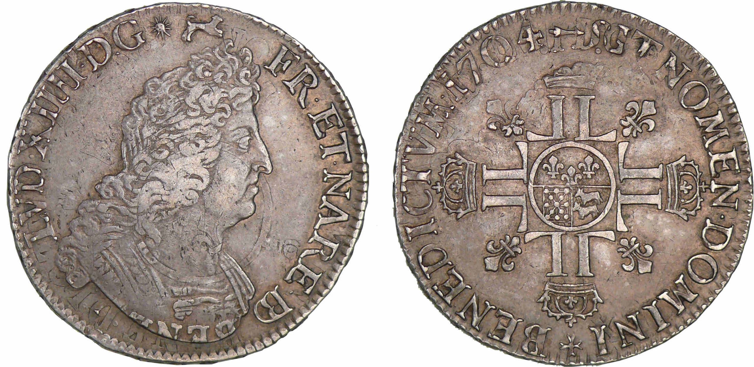 Avers : A/ LVD. XIIII. D. G. FR. ET. NAV. REX. Buste drapé à droite.