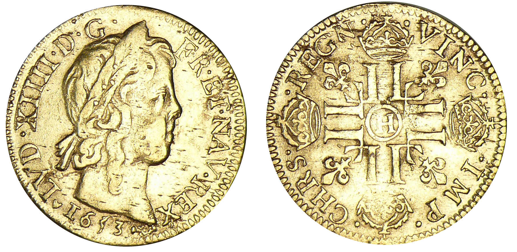Louis XIV – Louis d’or à la mèche longue 1653 H (La Rochelle)