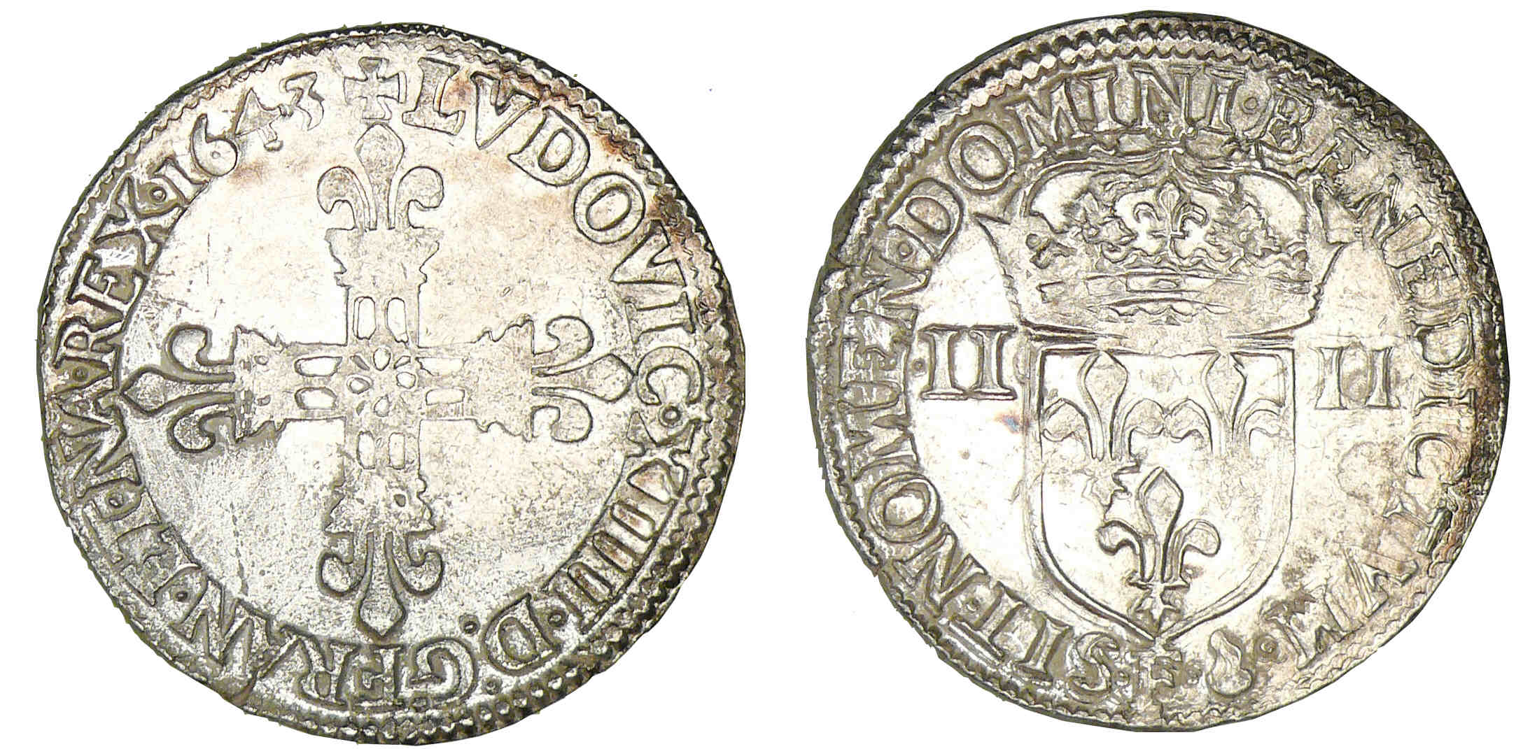 Louis XIV – Quart d’écu 1643 F (Angers)