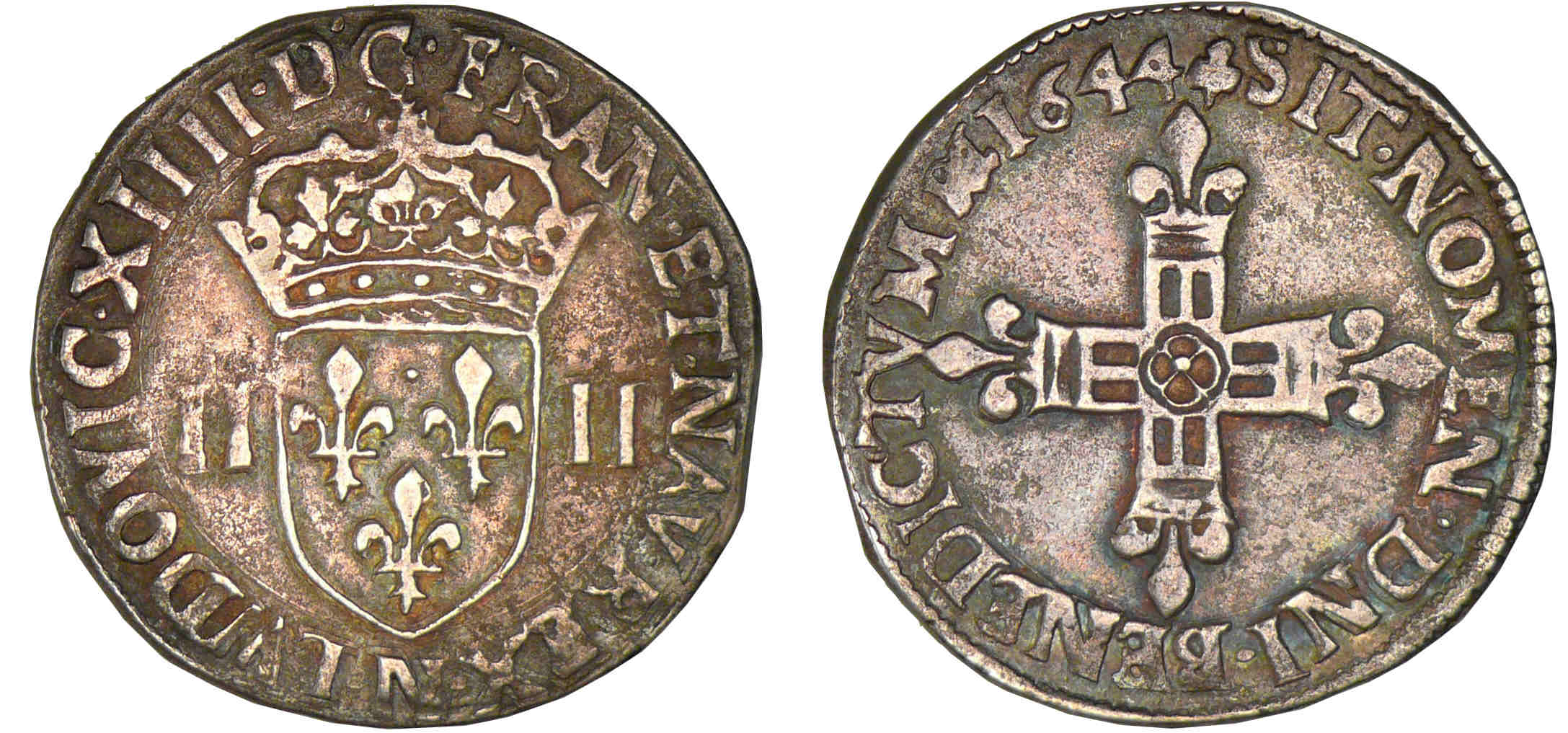 / Louis XIV – Quart d’écu – 1644 N (Montpellier)