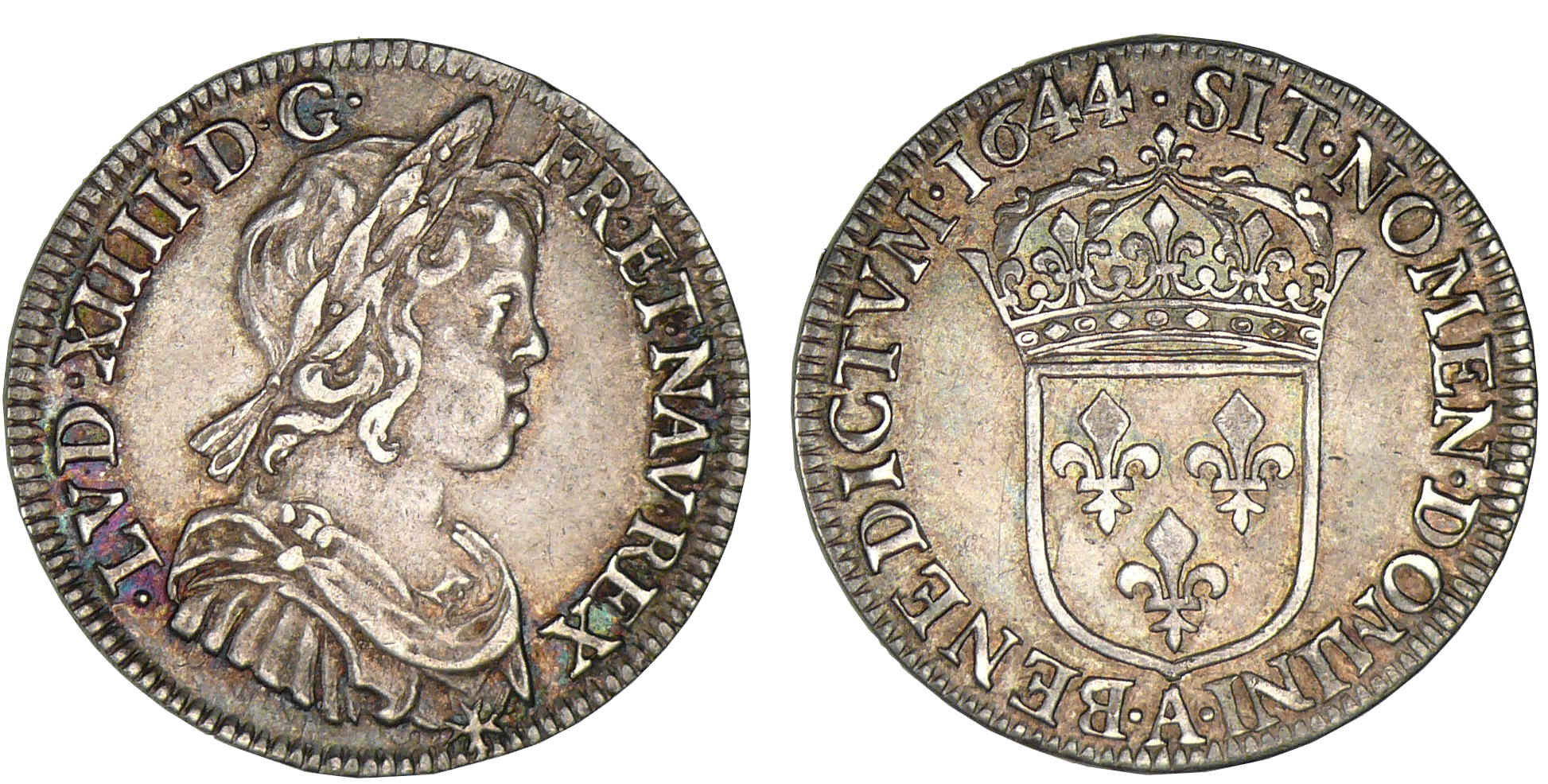 / Louis XIV – Quart d’écu à la mèche courte 1644. A (Paris)