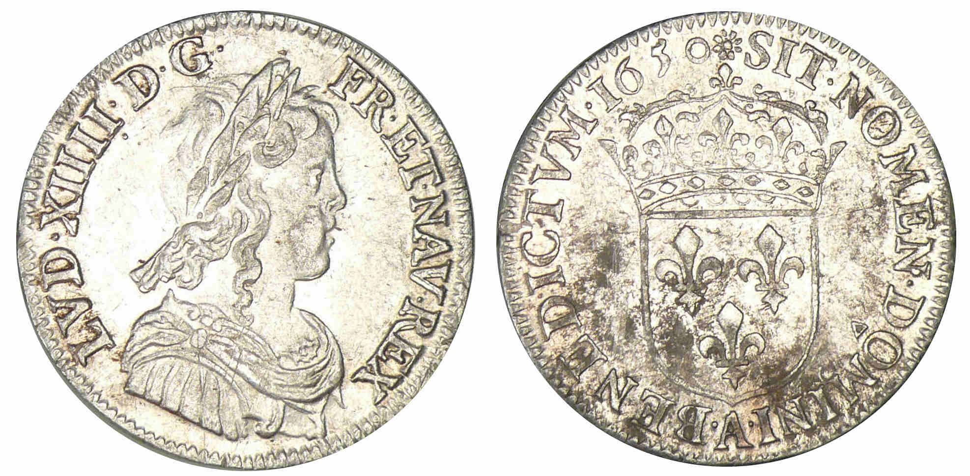 / Louis XIV – Quart d’écu à la mèche longue 1650 A (Paris)