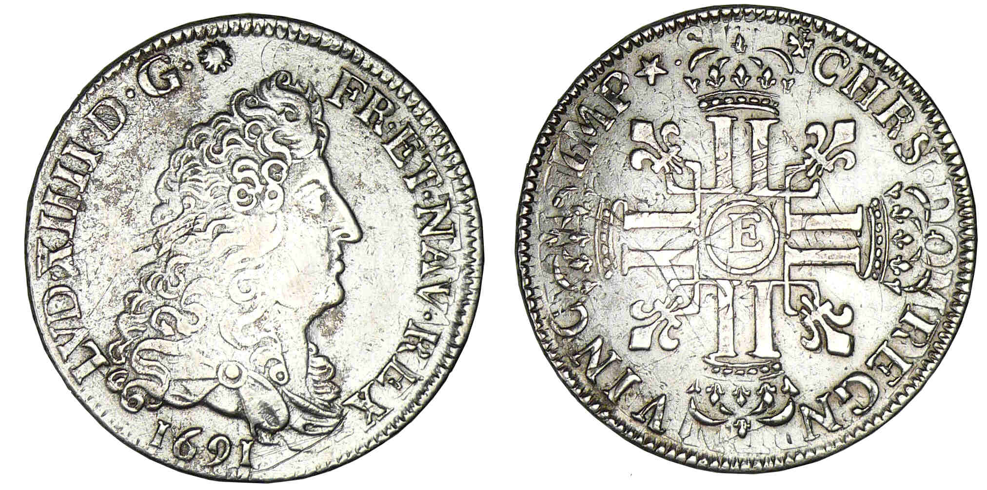 Louis XIV – Quart d’écu aux 8 L 1er type 1691 E (Tours)