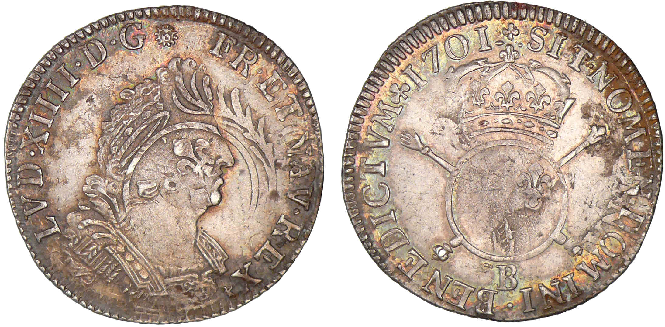 / Louis XIV – Quart d’écu aux insignes – 1701 B (Rouen)