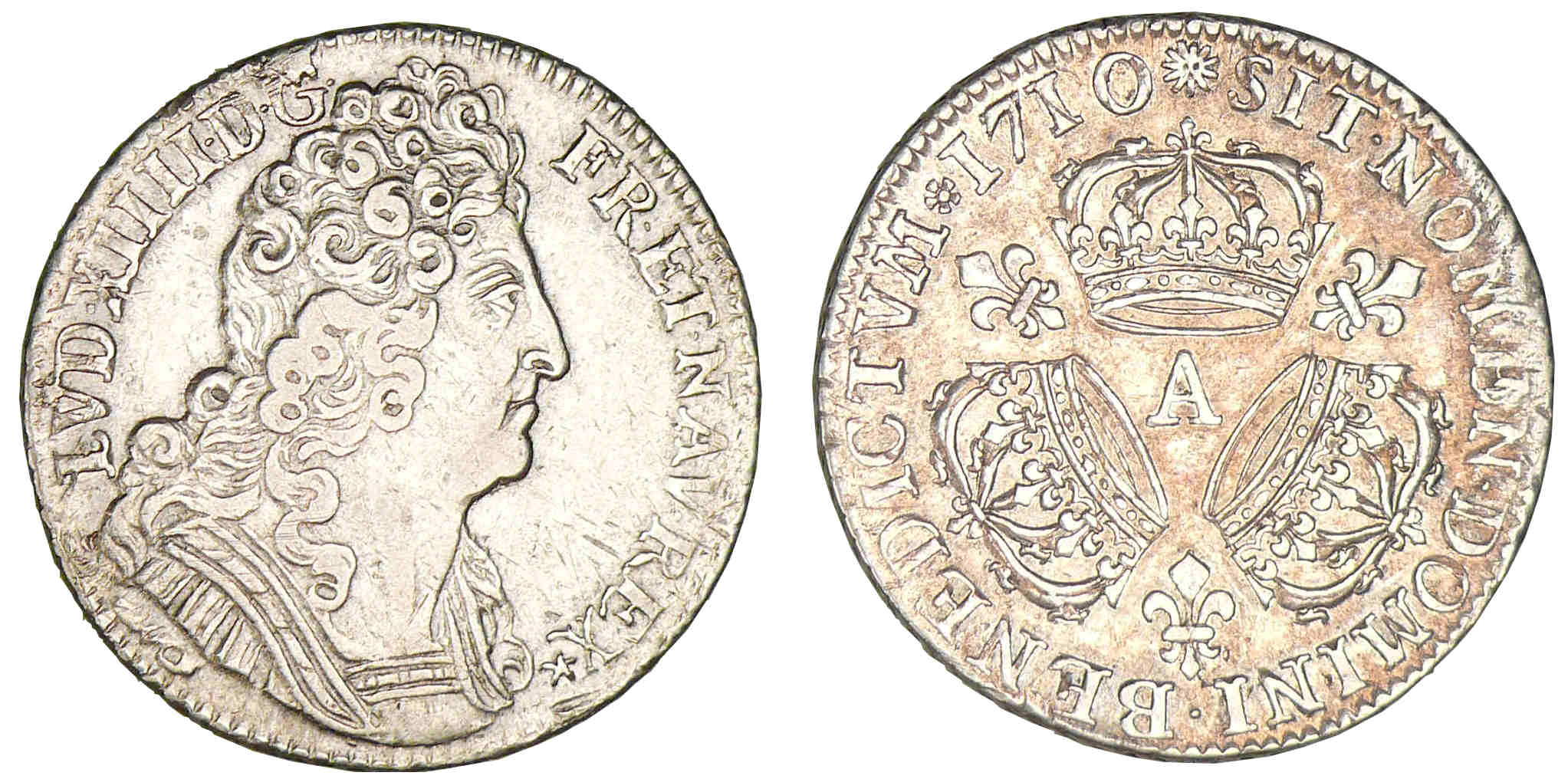 / Louis XIV – Quart d’écu aux trois couronnes 1710 A (Paris)