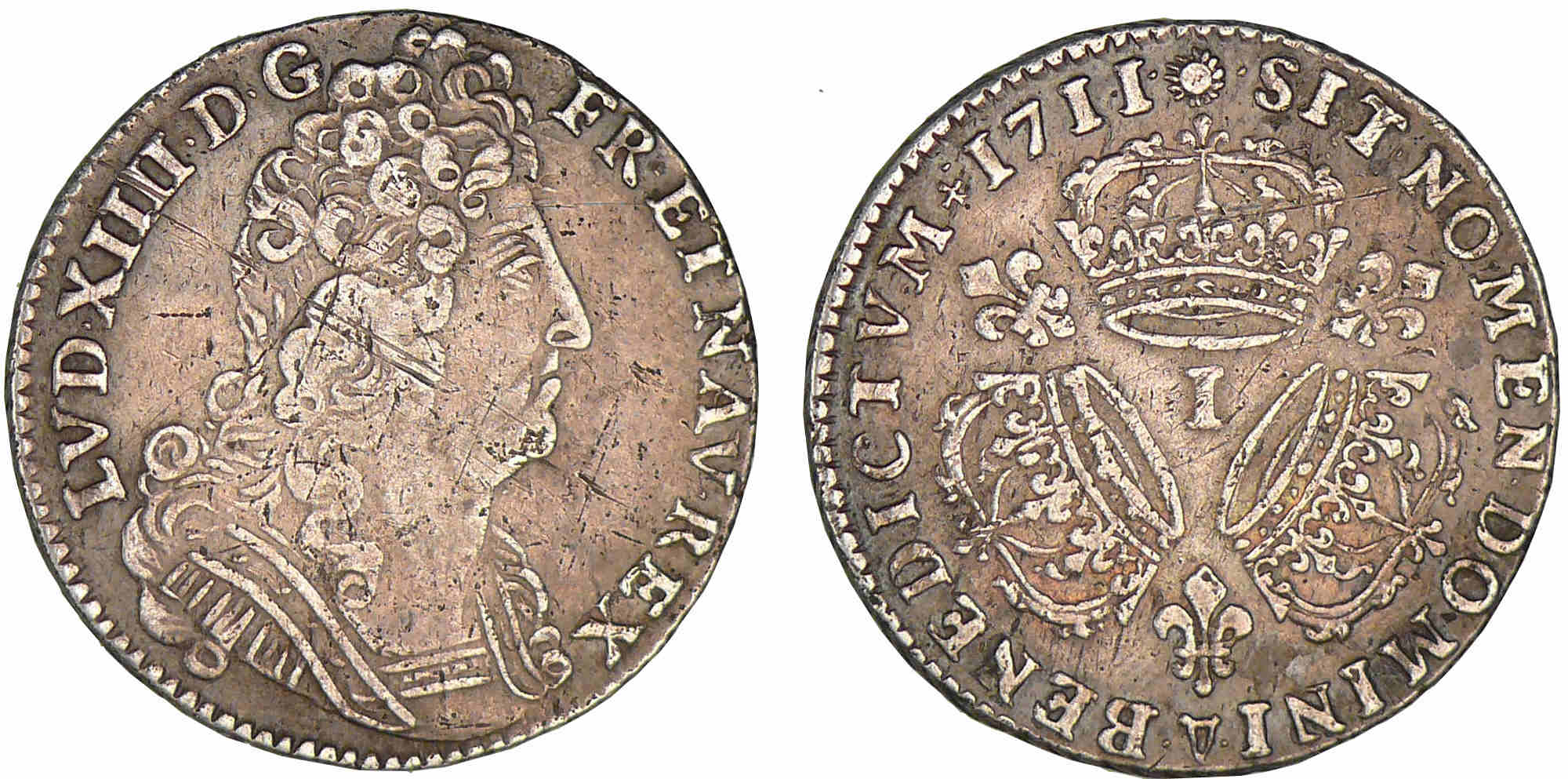 Louis XIV – Quart d’écu aux trois couronnes – 1711 I (Limoges)