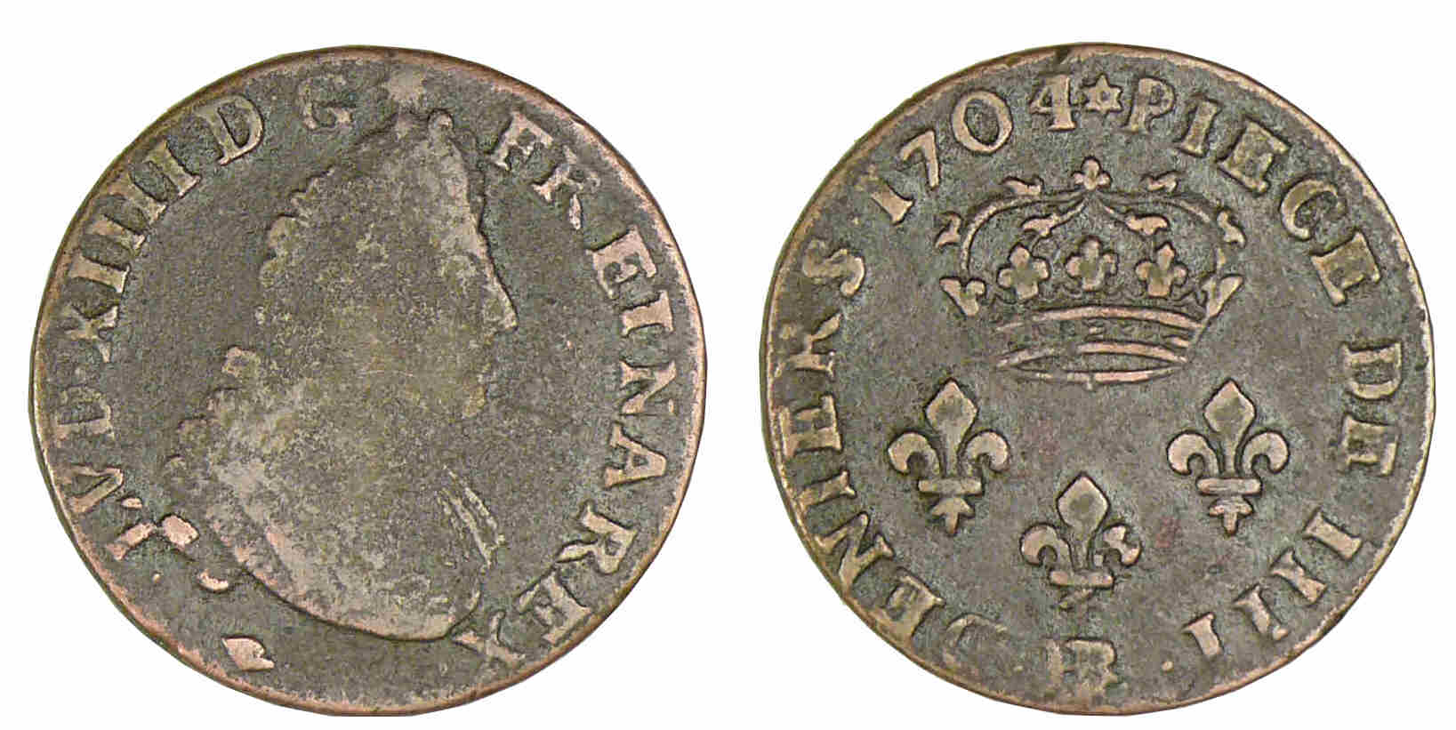 / Louis XIV – Quatre deniers de Strasbourg 1704 BB (Strasbourg)