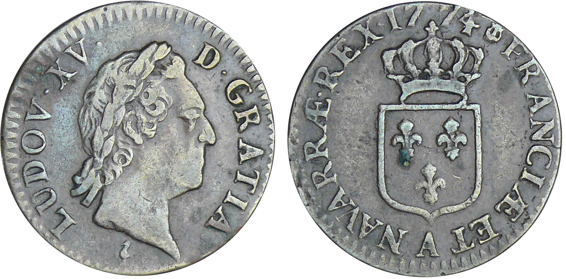 / Louis XV (1715-1774) – 1/2 sol à la vieille tête – 1774 A (Paris)