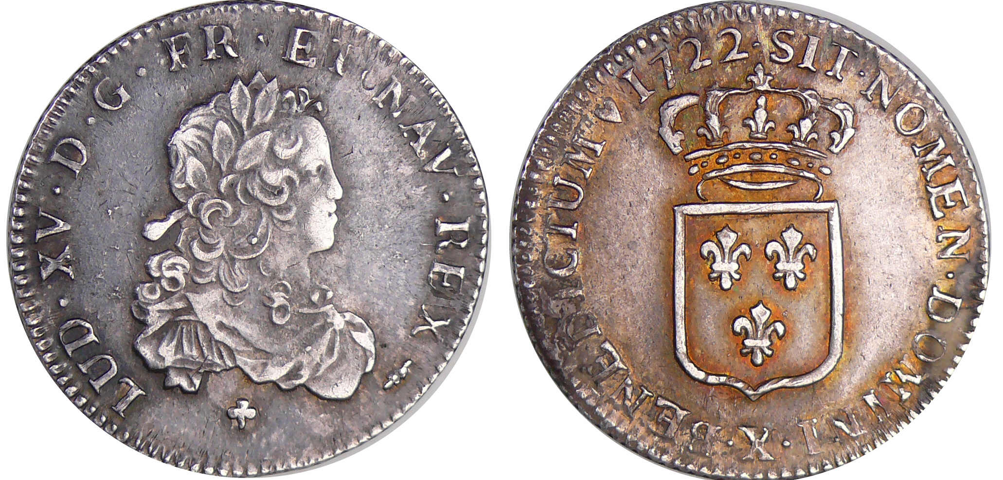 / Louis XV (1715-1774) – 1/3 d’écu de France – 1722 X (Amiens) flan réf