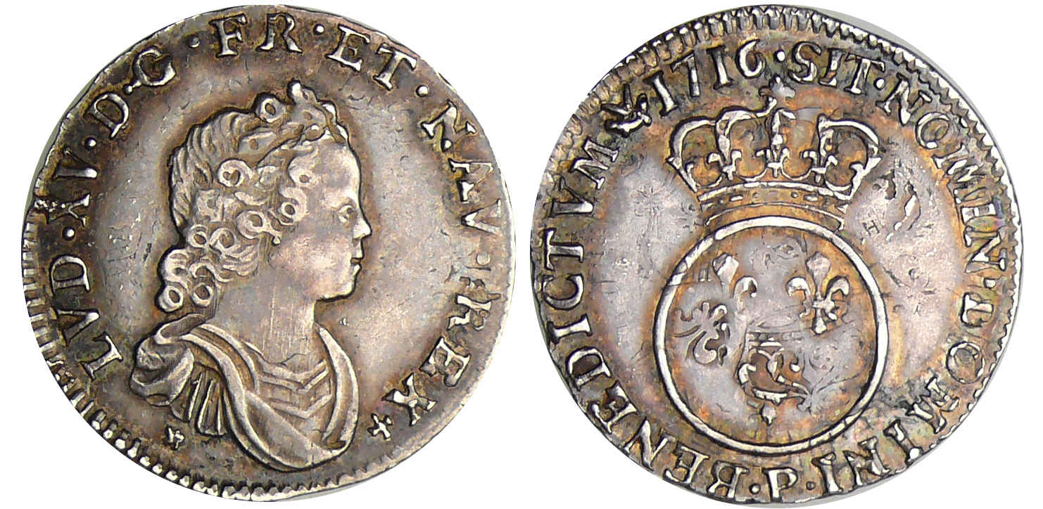 / Louis XV (1715-1774) – 1/10 d’écu vertugadin – 1716 P (Dijon)