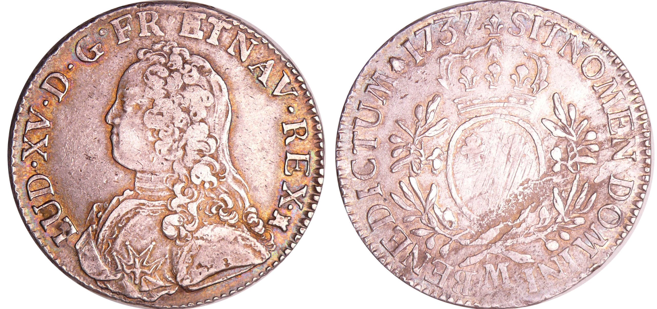 Louis XV (1715-1774) – Ecu aux branches d’olivier – 1737 M (Toulouse)