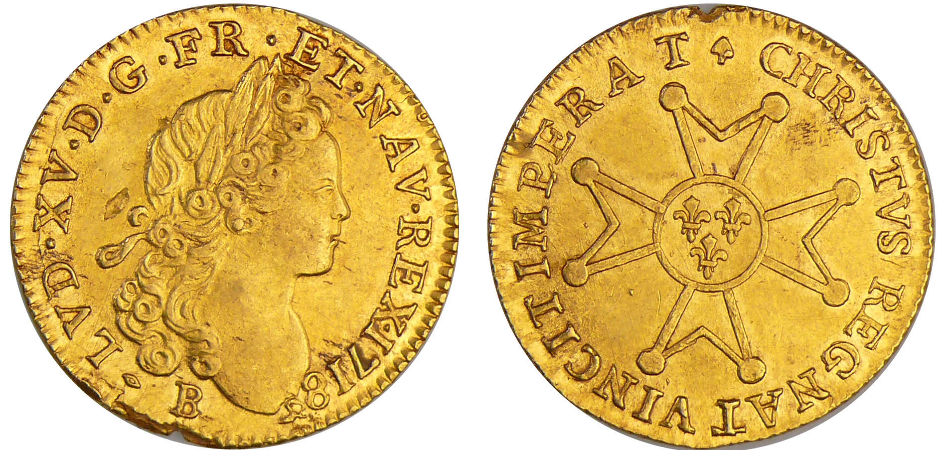 / Louis XV (1715-1774) – Louis d’or à la croix du Saint-Esprit – 1718 B (Rouen)