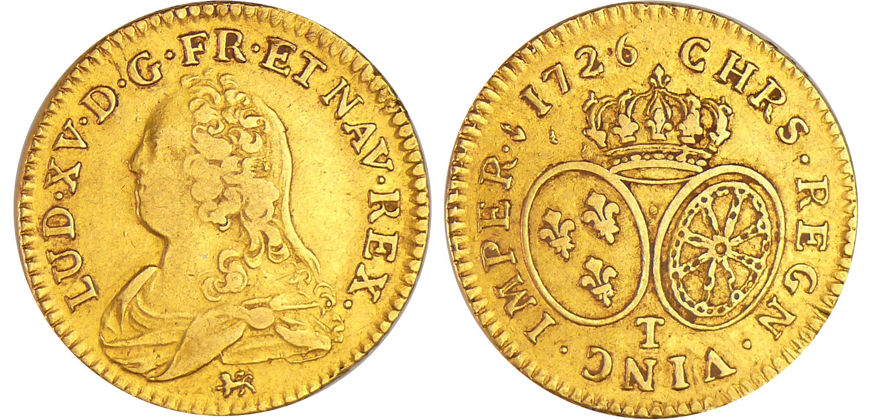 Louis XV (1715-1774) – Louis d’or aux lunettes – 1726 T (Nantes)