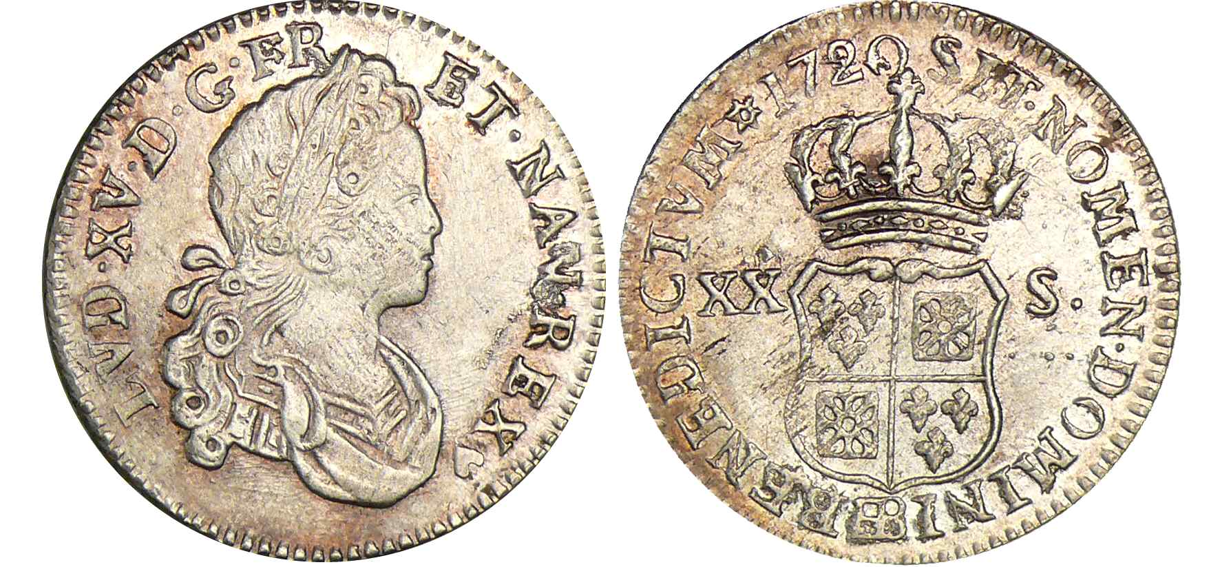 / Louis XV (1715-1774) – XX sols de France-Navarre – 1720 BB (Strasbourg)