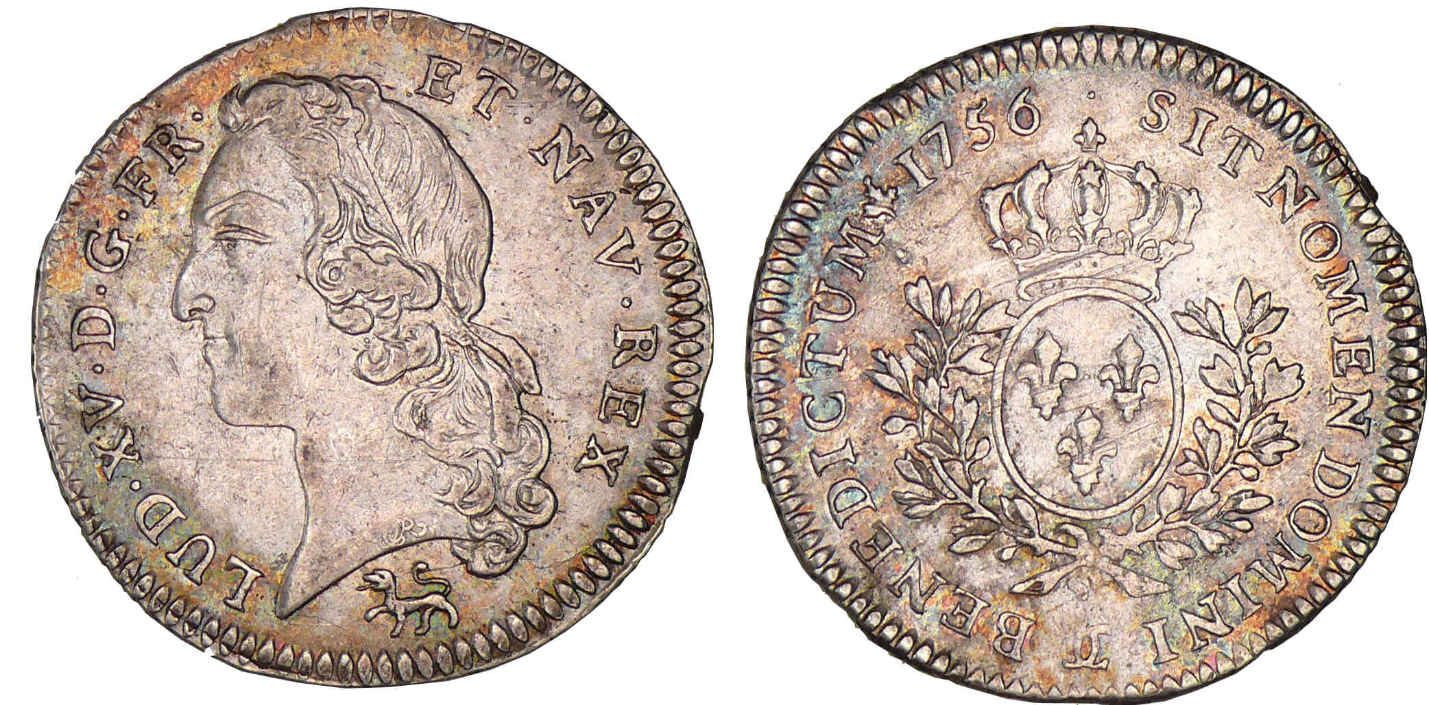 / Louis XV – Cinquième d’écu au bandeau – 1756 CC (Besançon)