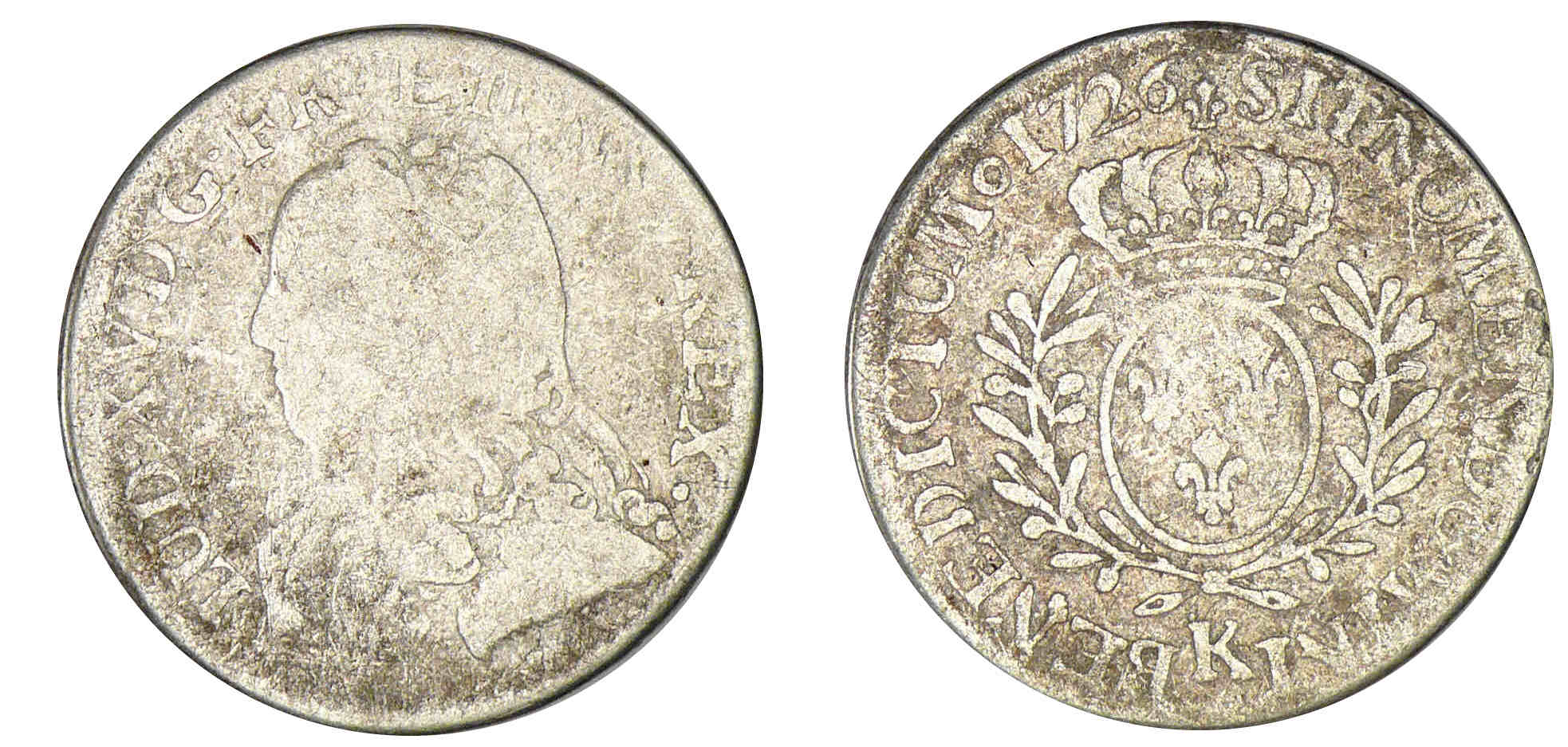 / Louis XV – Cinquième d’écu aux lauriers 1726 K (Bordeaux)
