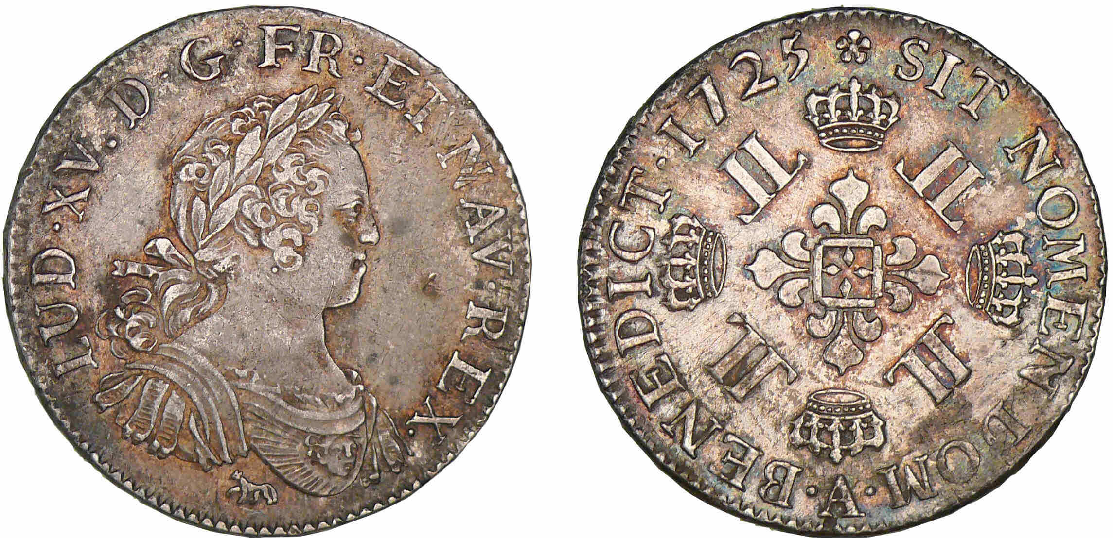 A/ LVD. XV. D. G. FR. ET. NAV. REX. Buste lauré et drapé à droite.