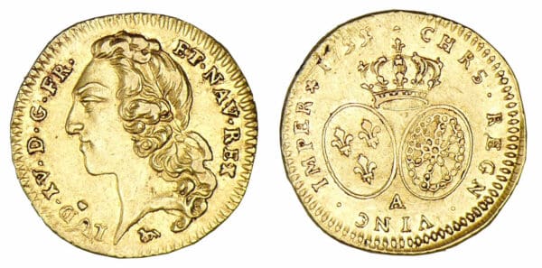 Avers : A/ LUD. XV. D. G. FR. ET NAV. REX. Buste nu du roi à gauche.