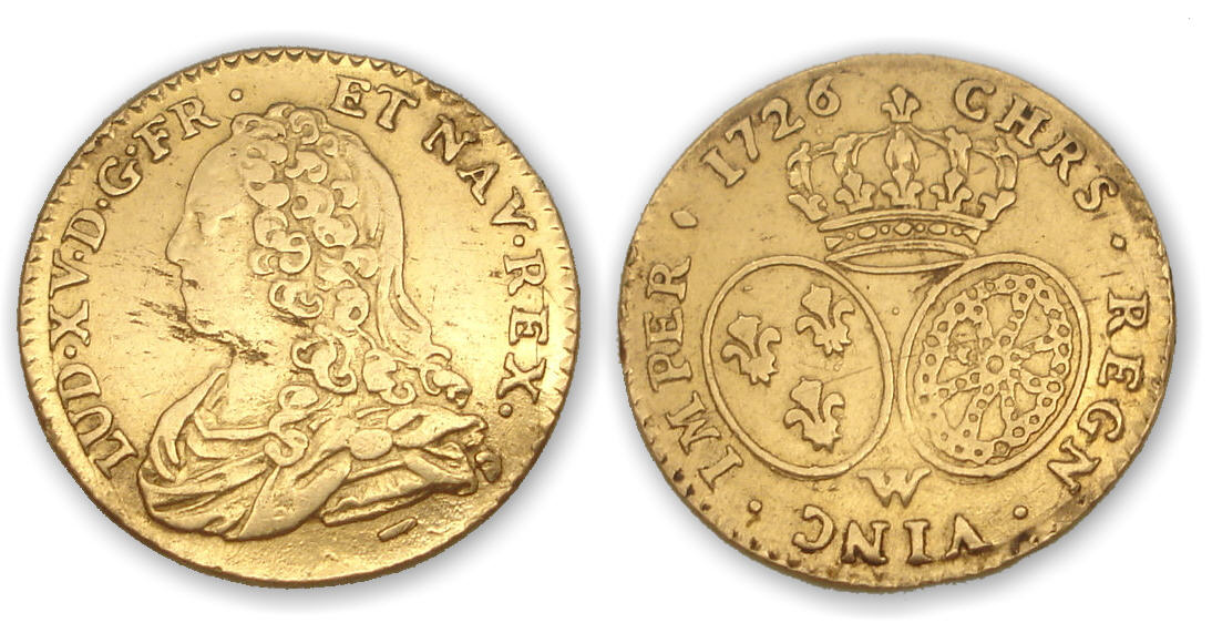 Louis XV – Demi-louis d’or aux lunettes 1726 W (Lille)