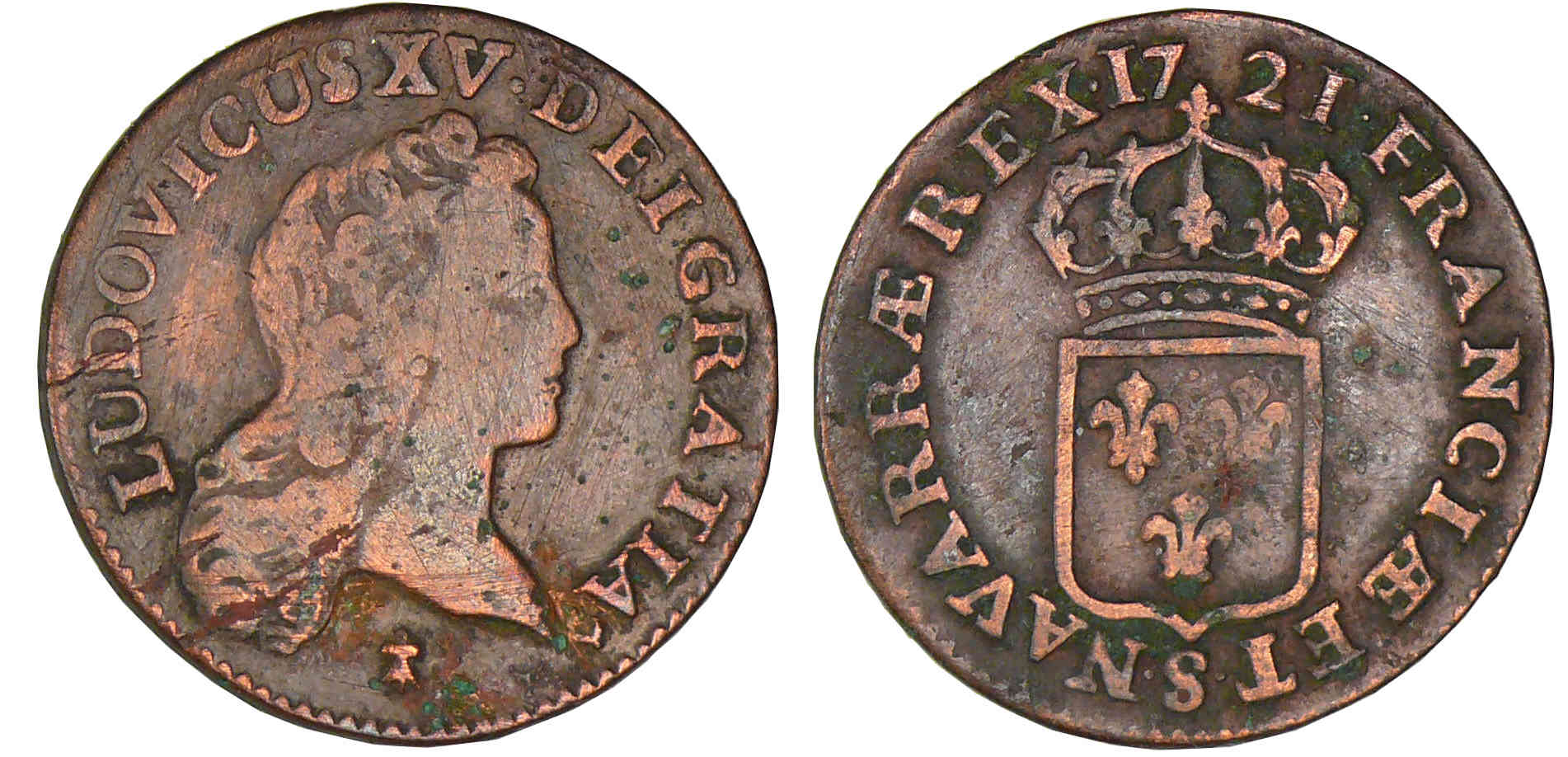 / Louis XV – Demi sol au buste enfantin – 1721 S (Reims)