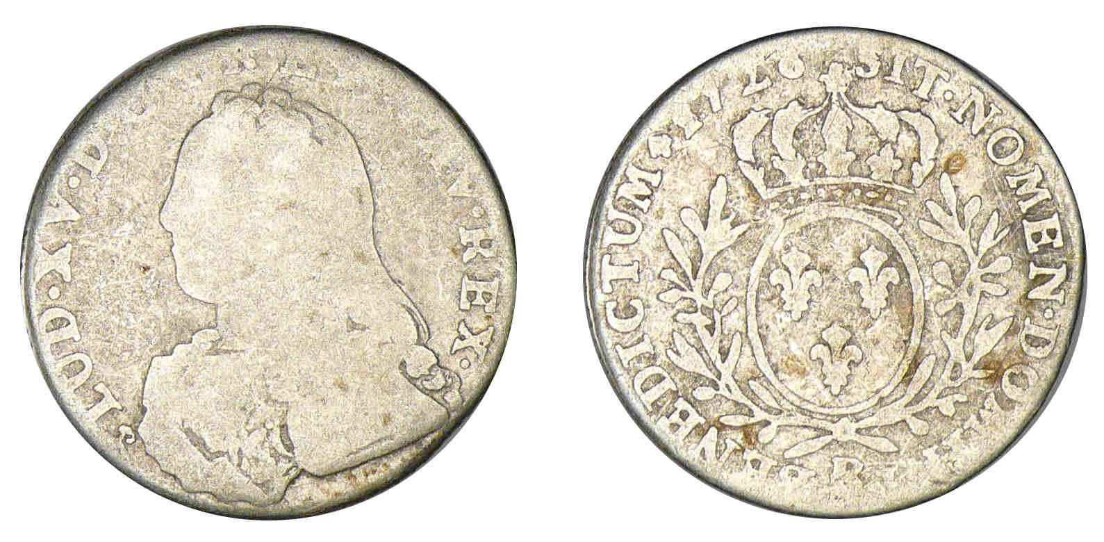 A/ LUD. XV. D. G. FR. ET. NAV. REX. Buste du roi drapé à gauche.