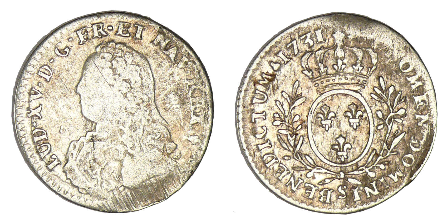 Louis XV – Dixième d’écu aux lauriers 1731 S (Reims)
