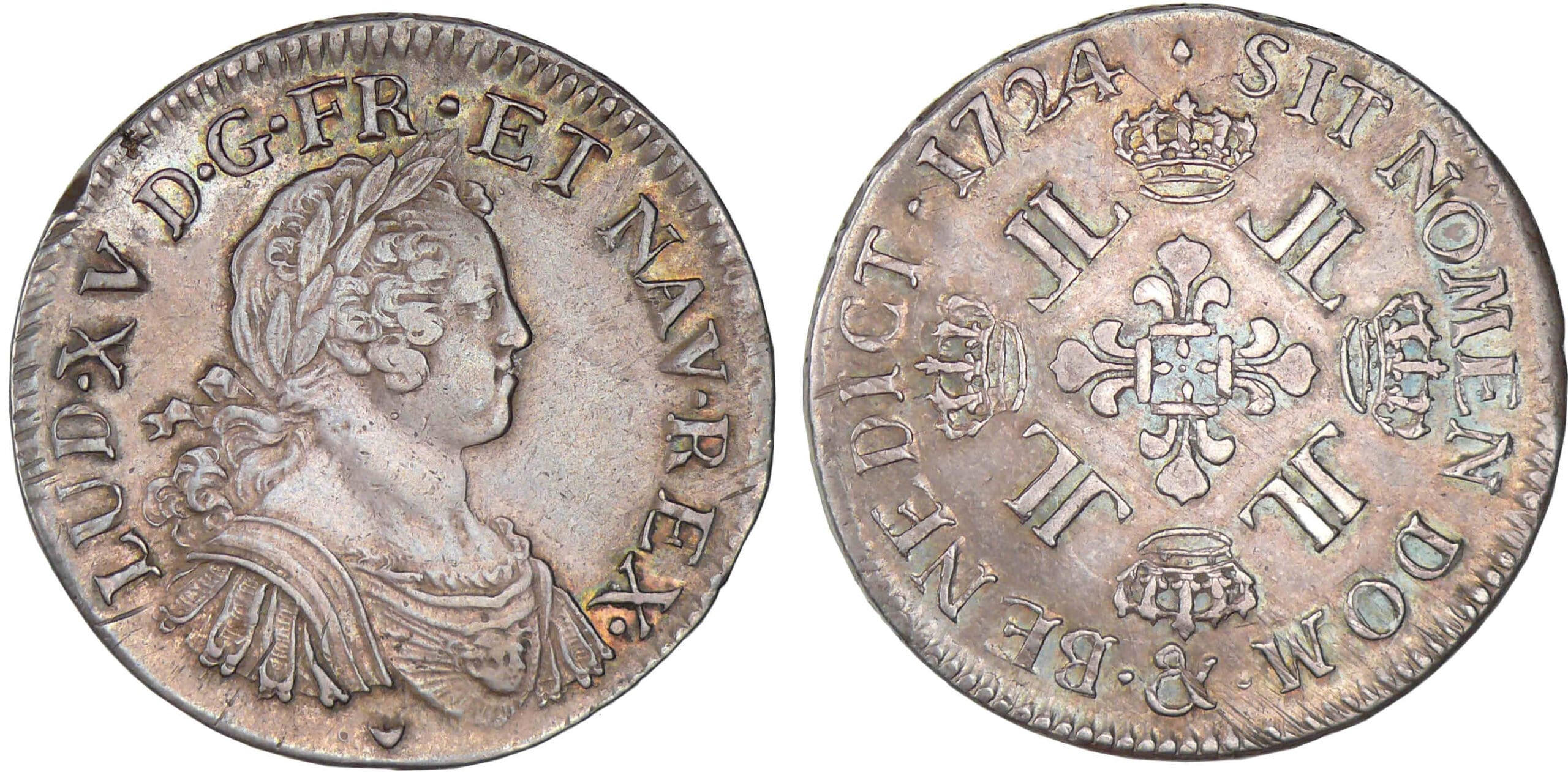 A/ LVD. XV. D. G. FR. ET. NAV. REX. Buste lauré et drapé à droite.