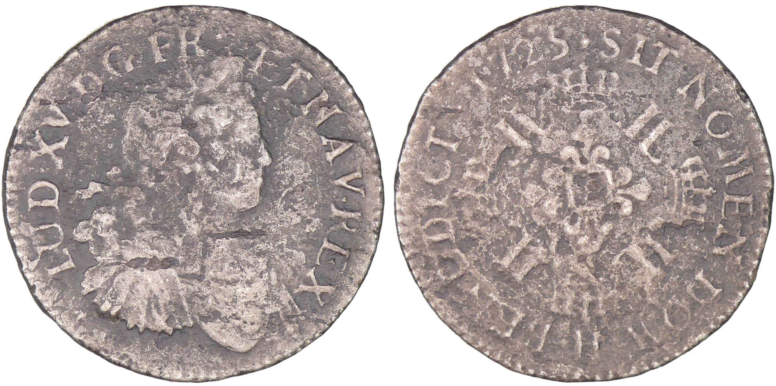 A/ LVD. XV. D. G. FR. ET. NAV. REX. Buste lauré et drapé à droite.
