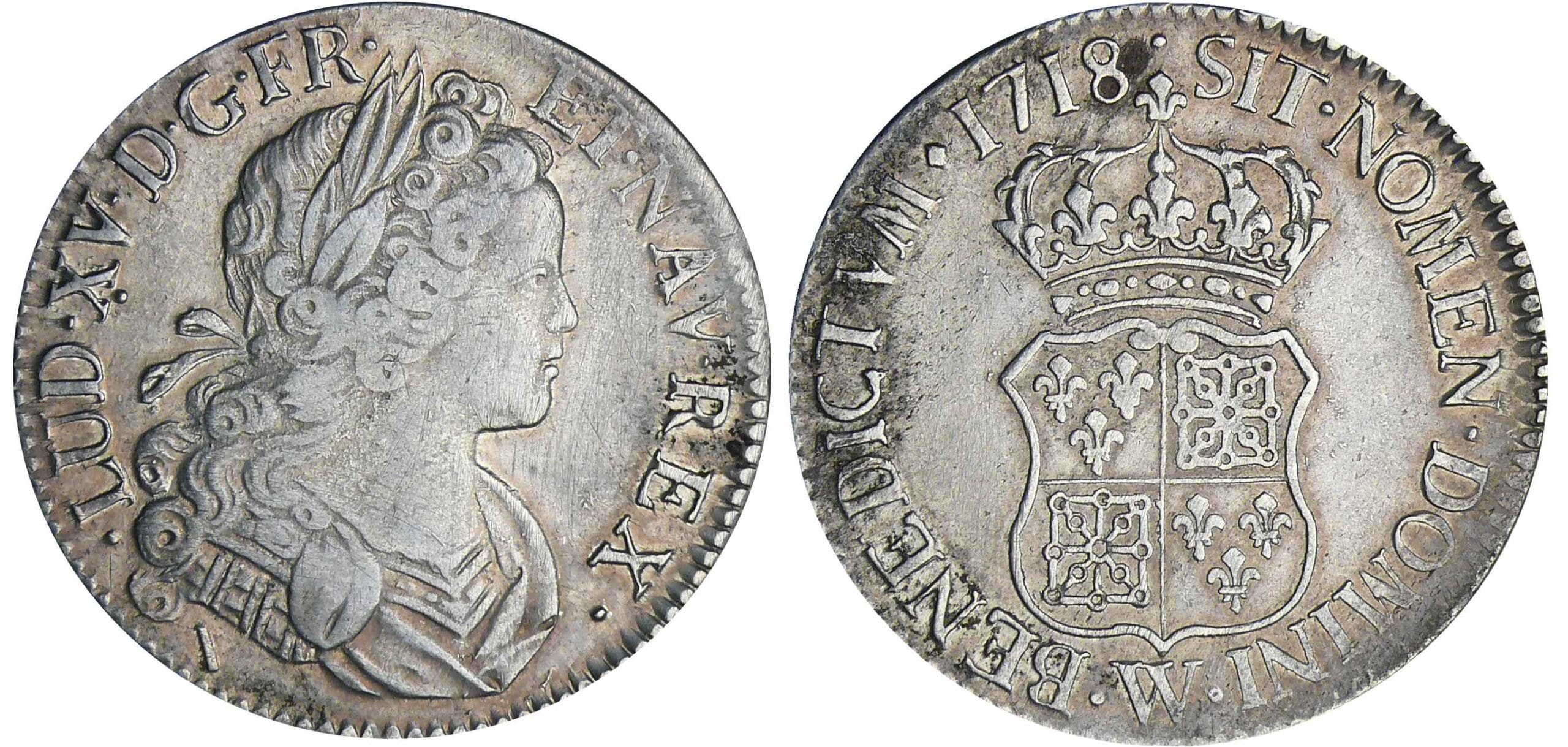 Louis XV – Ecu de France-Navarre – 1718 W (Lille)