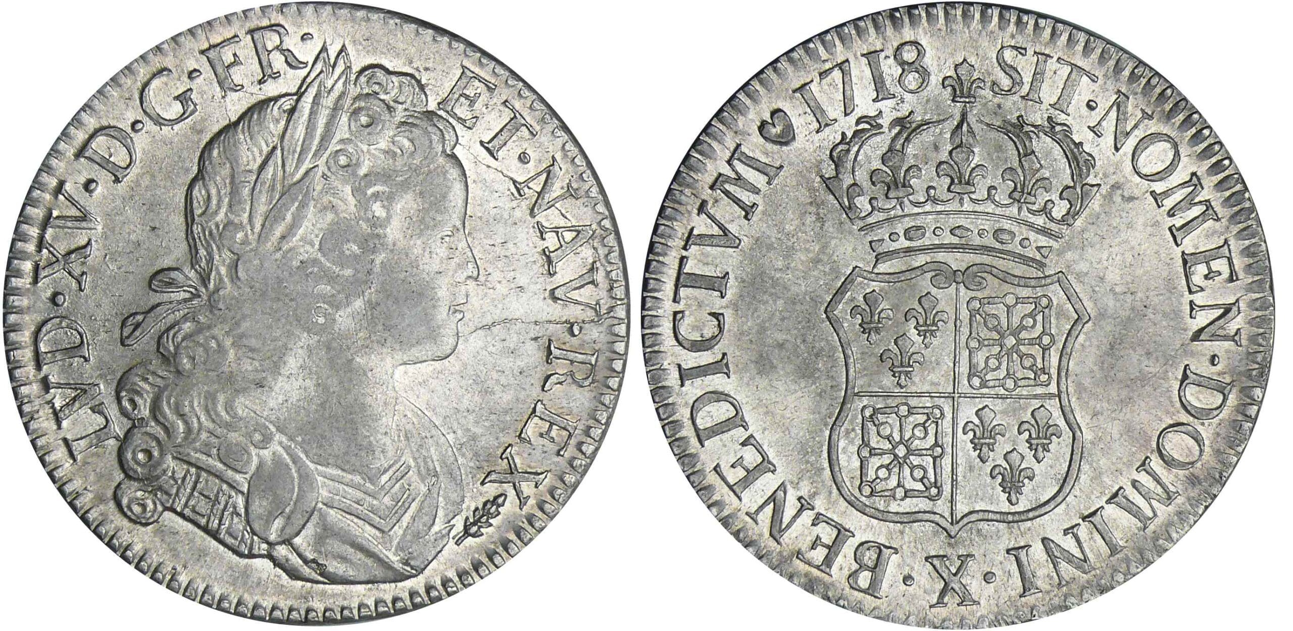 Louis XV – Ecu de France-Navarre – 1718 X (Amiens)