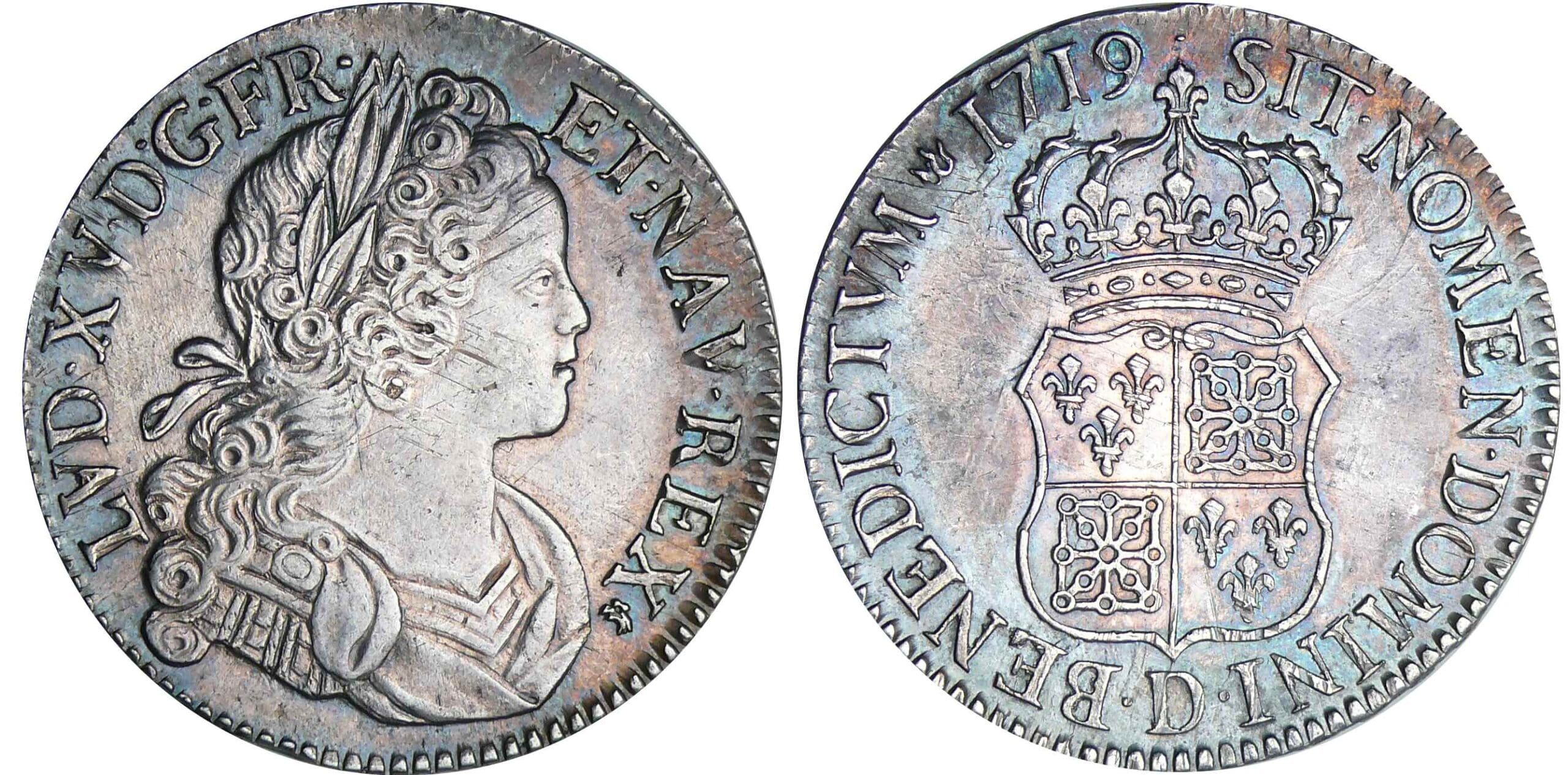 / Louis XV – Ecu de France-Navarre – 1719 D (Lyon)