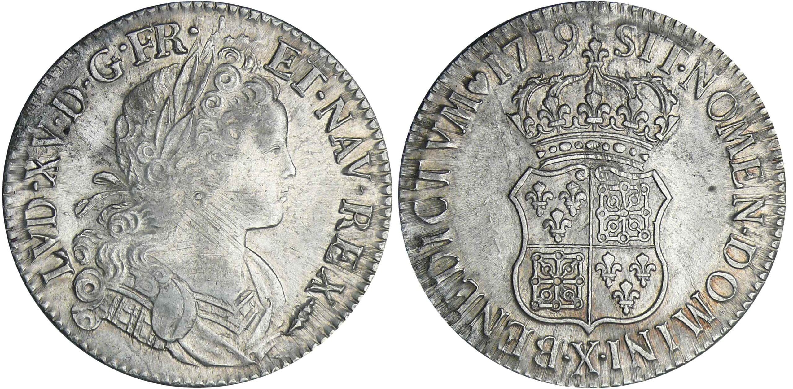 / Louis XV – Ecu de France-Navarre – 1719 X (Amiens)
