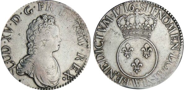 Louis XV – Ecu vertugadin – 1716 W (Lille) flan neuf