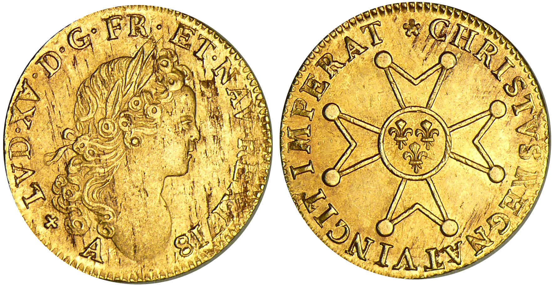 Louis XV – Louis d’or à la croix du Saint-Esprit – 1718 A (Paris)