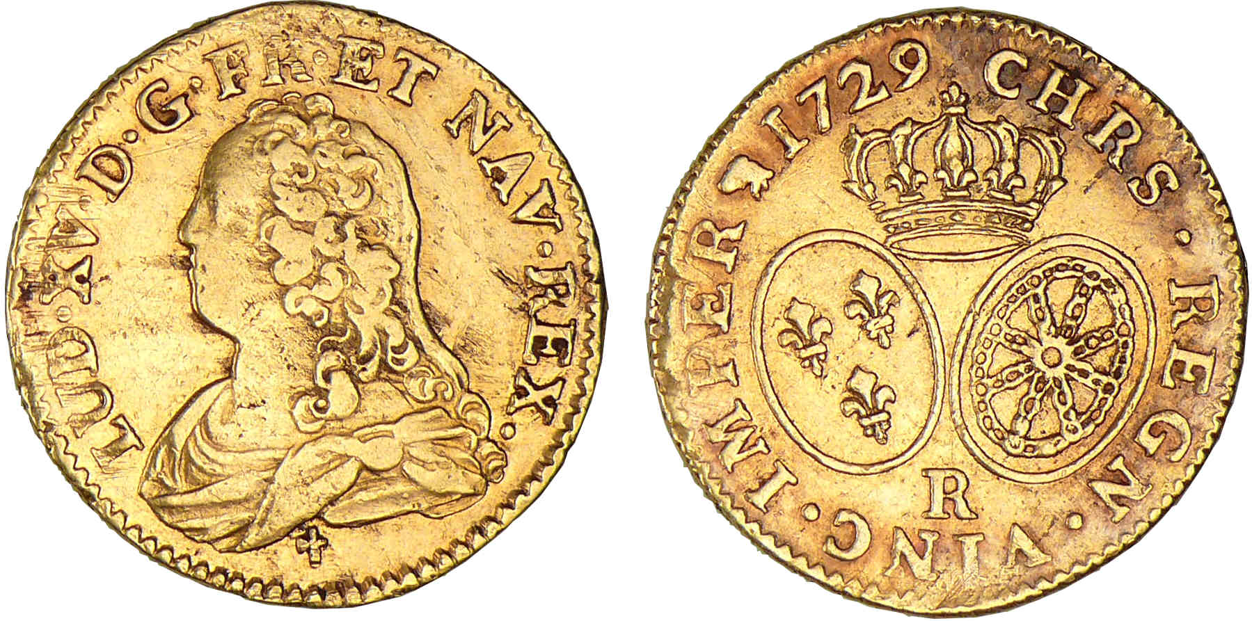 / Louis XV – Louis d’or aux lunettes – 1729 R (Orléans)