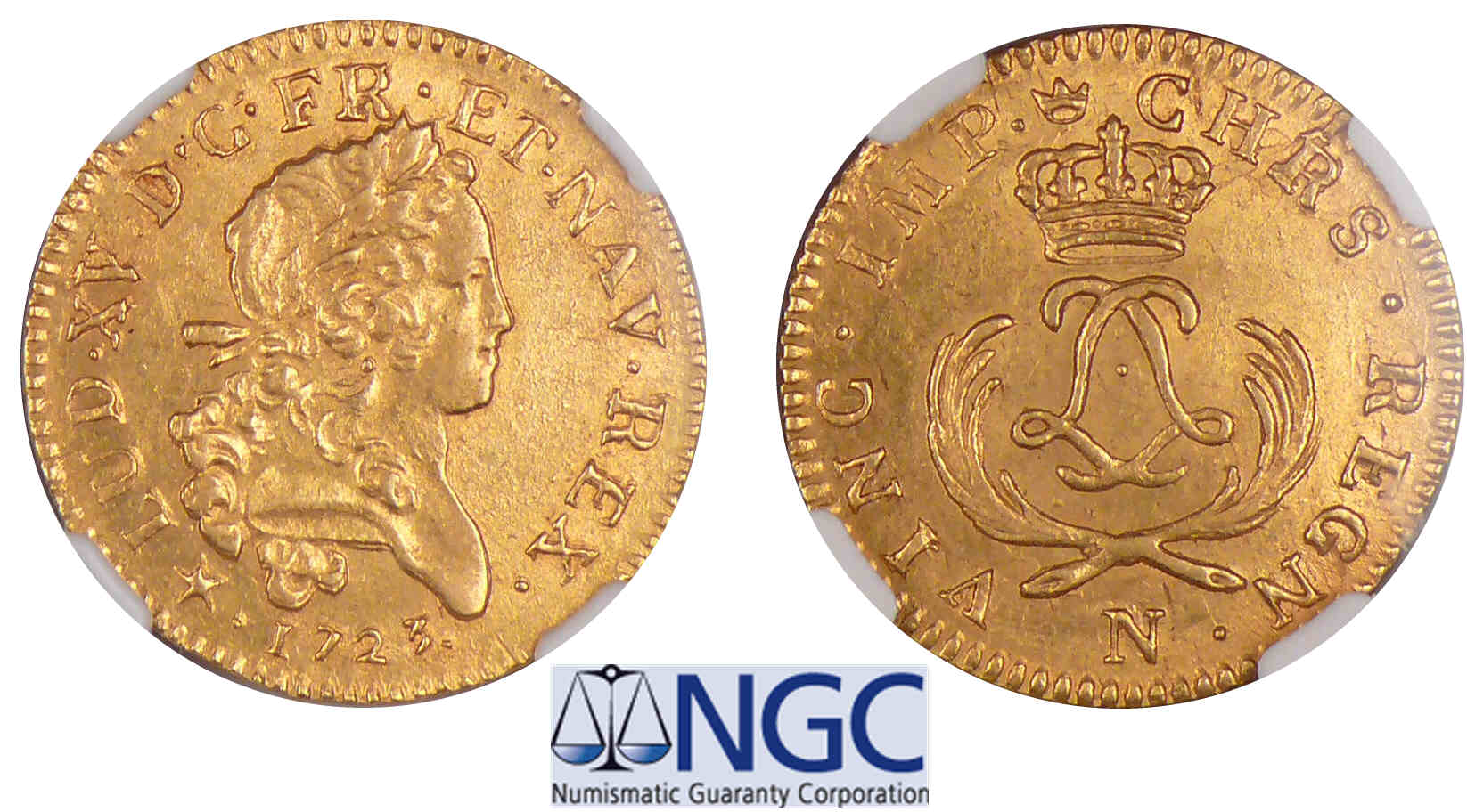 / Louis XV – Louis d’or Mirliton aux palmes courtes – 1723 N (Montpellier)