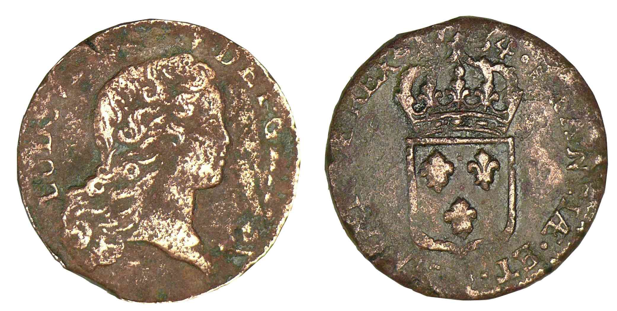/ Louis XV – Sol au buste enfantin 1734 Q (Perpignan)
