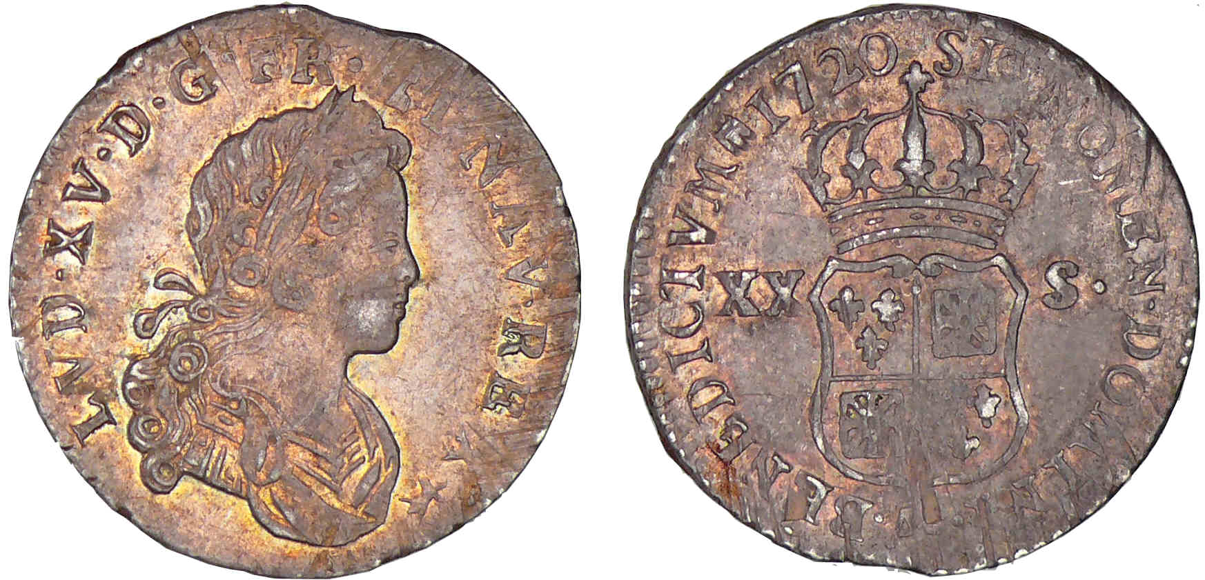 Louis XV – XX sols de France et de Navarre – 1720 AA (Metz)