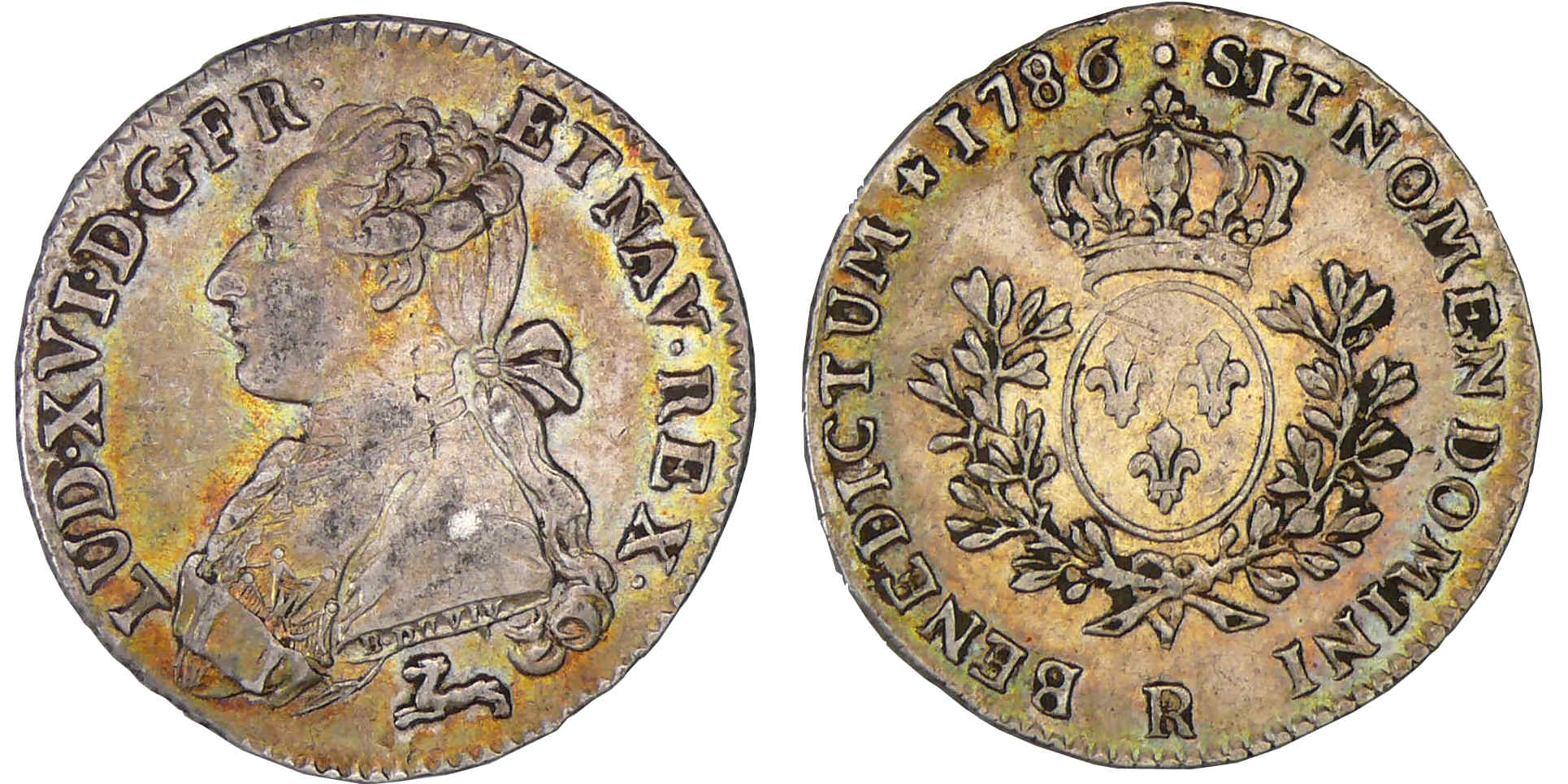 Louis XVI (1774-1792) – 1/5 d’écu aux branches d’olivier – 1786 R (Orléans)