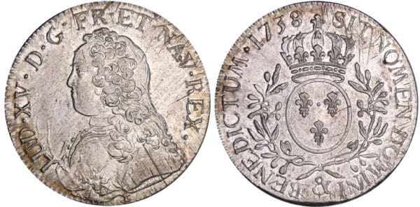 Louis XV (1715-1774) – Ecu aux branches d’olivier – 1738 & (Aix)
