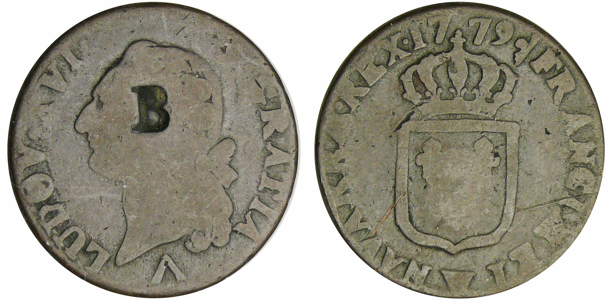Louis XVI (1774-1792) – Sol – 1779 W (Lille) Contremarqué B