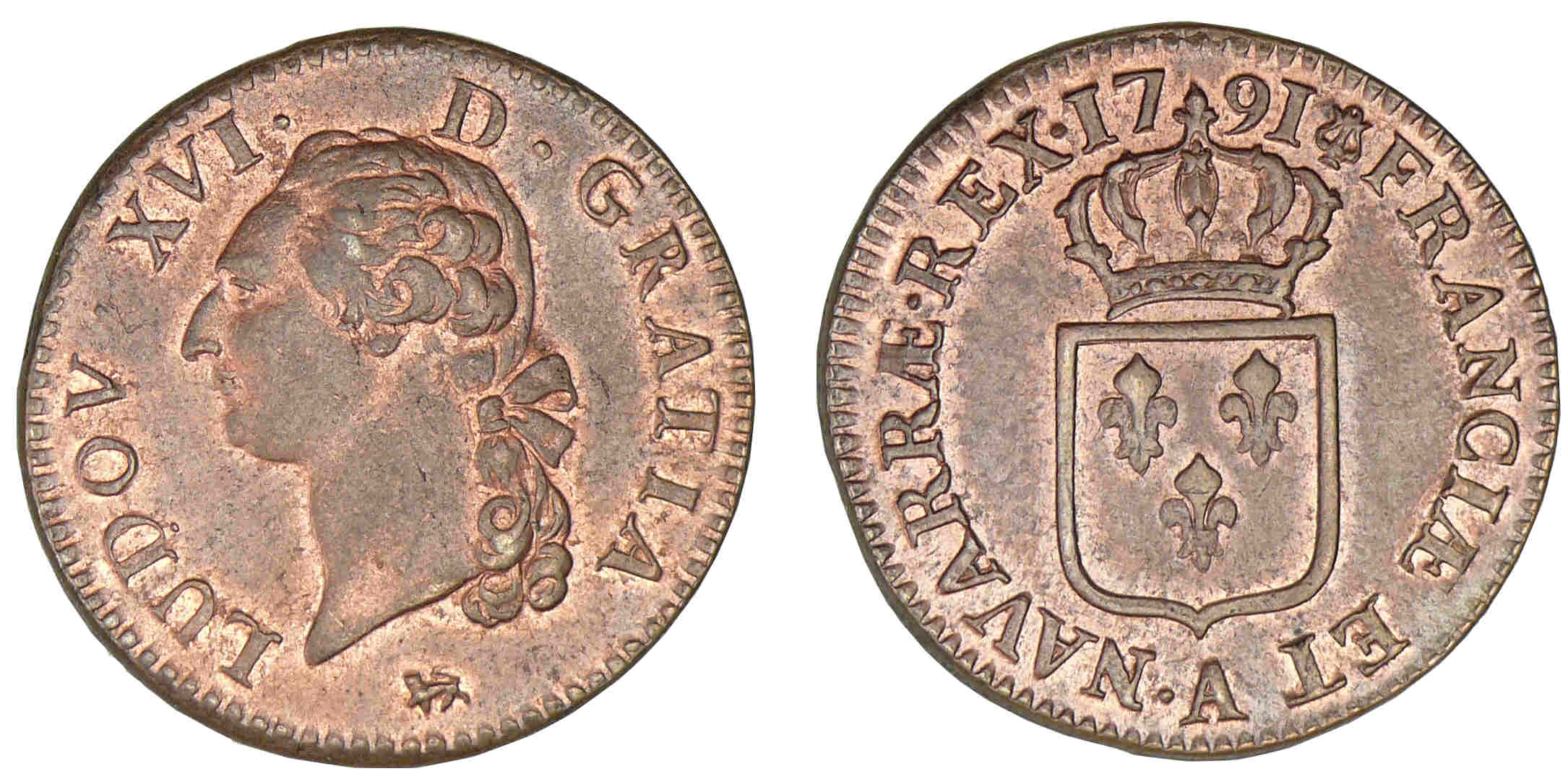 Avers : A/ LUDOV XVI D GRATIA. Buste nu à gauche.